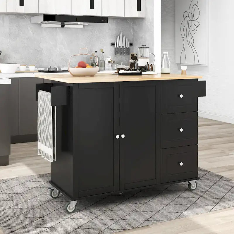 1.Foldable drop-leafIt has a large enough table top,this island is suitable for both cooking and eating,Moreover, putting down the drop-leaf will save you more space.Desktop and falling leaf are metal support frames, which are more solid and durable.