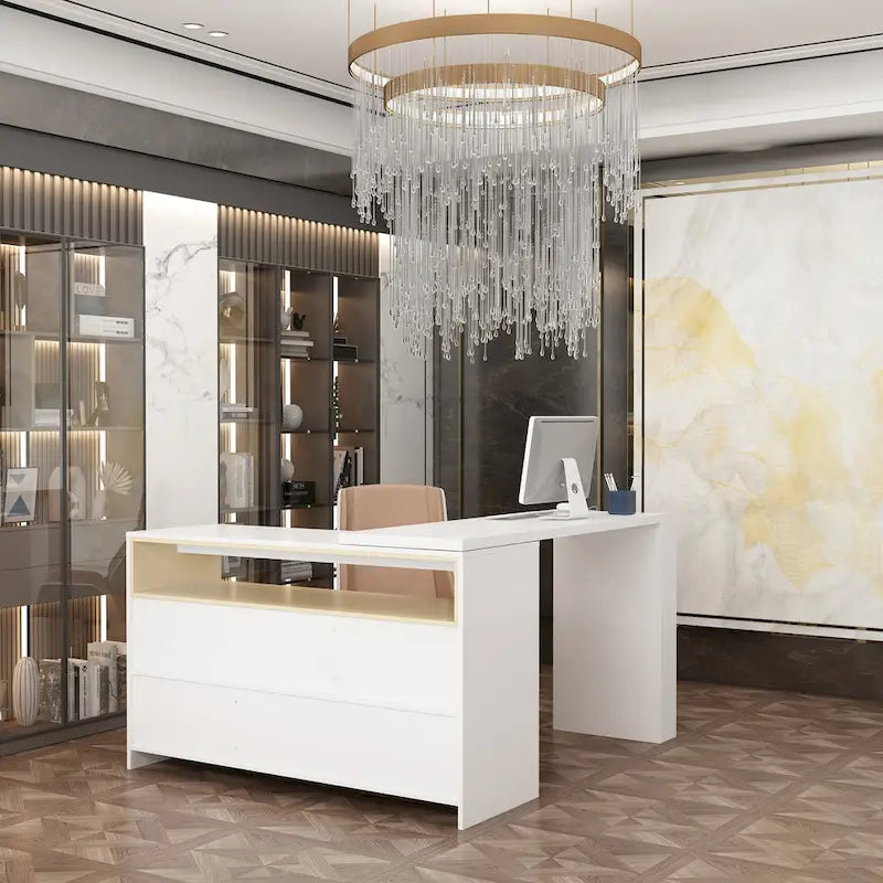 Introducing our versatile and stylish multi-functional furniture piece that can be placed in various areas of your home, including the kitchen, bedroom, or study. With its elegant white body and a natural wood-tone top, this piece seamlessly combines functionality with aesthetics.