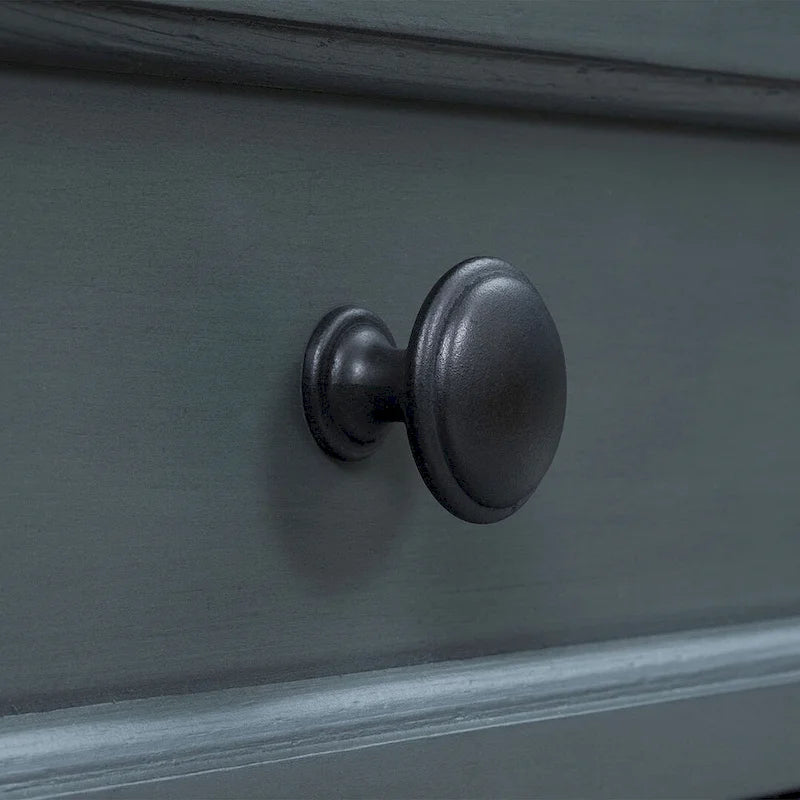 - Ample storage with 4 drawers and lower shelf.